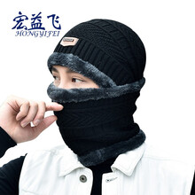 宏益飞 冬季帽子 男士加绒保暖毛线帽 女围脖套帽 户外防寒针织帽 护耳棉帽子 黑配灰毛 均码
