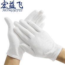 宏益飞 白色礼仪手套 珠宝文玩手套 劳保白手套棉汗布 检阅表演手套 12双 白色 经济款L码(中厚)