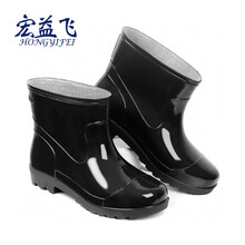 宏益飞 雨鞋男低筒短筒水鞋 黑色PVC塑胶鞋 牛筋厚底防水鞋雨鞋 纯黑色 42