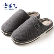 宏益飞 棉拖鞋 防滑居家情侣产后月子鞋 半包跟棉鞋男士冬季 深灰 40-41