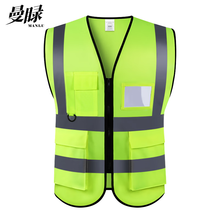 曼睩E-019荧光绿执勤款肩条反光背心骑行夜间跑步工地施工反光马甲C-004