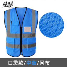 曼睩F-034网面户外施工中蓝反光背心建筑施工高反光马甲交通警示反光安全服C-002 2XL 现货