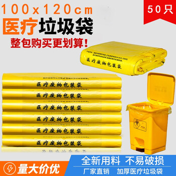 絮实 加厚黄色医疗垃圾袋平口120*140cm一把50个(垃圾桶)塑料垃圾袋