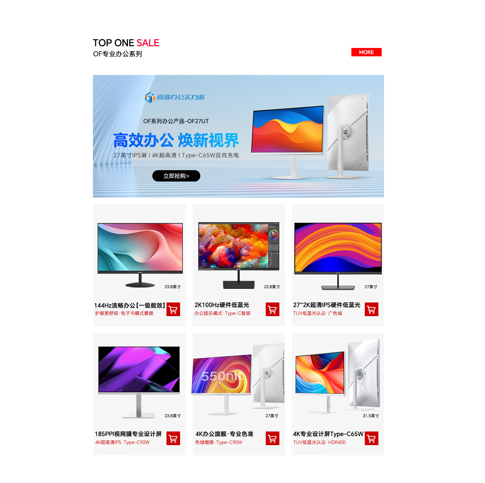 SANC 盛色23.8英寸显示器144Hz流畅办公 硬件低蓝光IPS面板 广色域可壁挂 白色电脑屏幕OF24F
