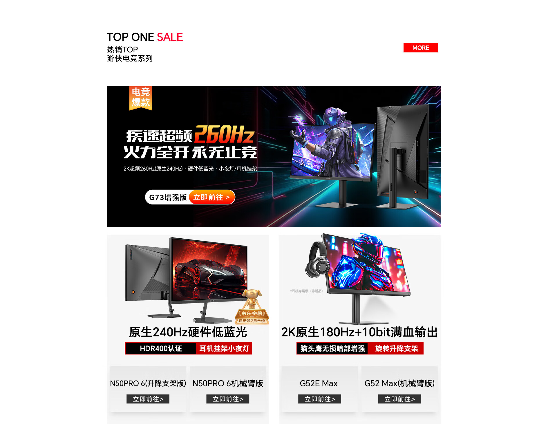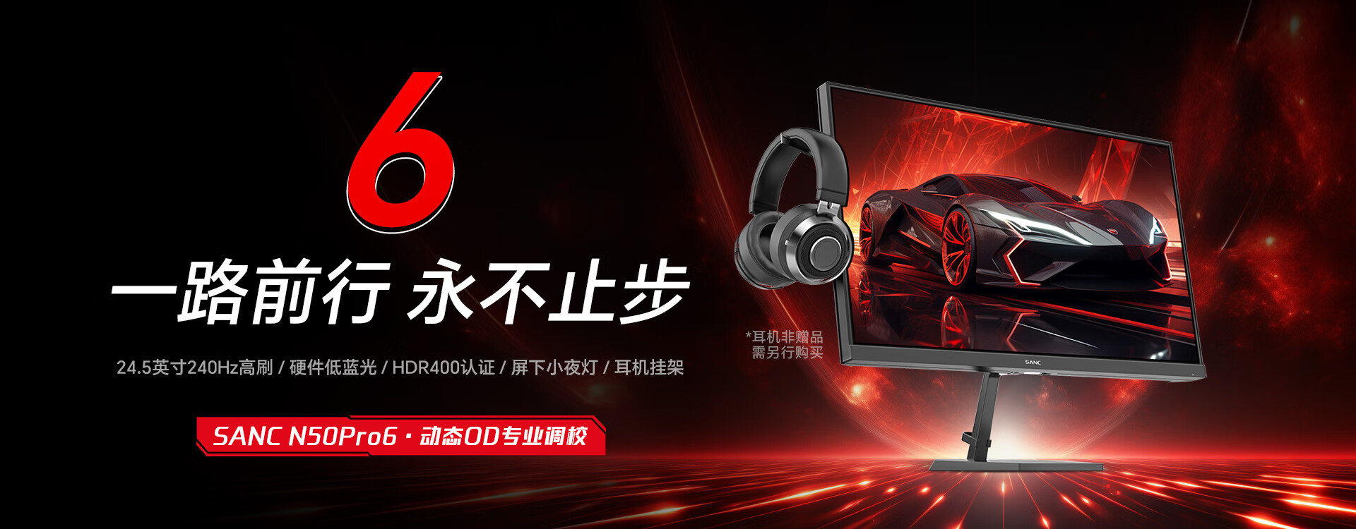 SANC盛色24.5英寸超频260Hz硬件低蓝光 FastIPS电竞显示器 耳机挂架小夜灯电脑屏幕 N50Pro6机械臂版