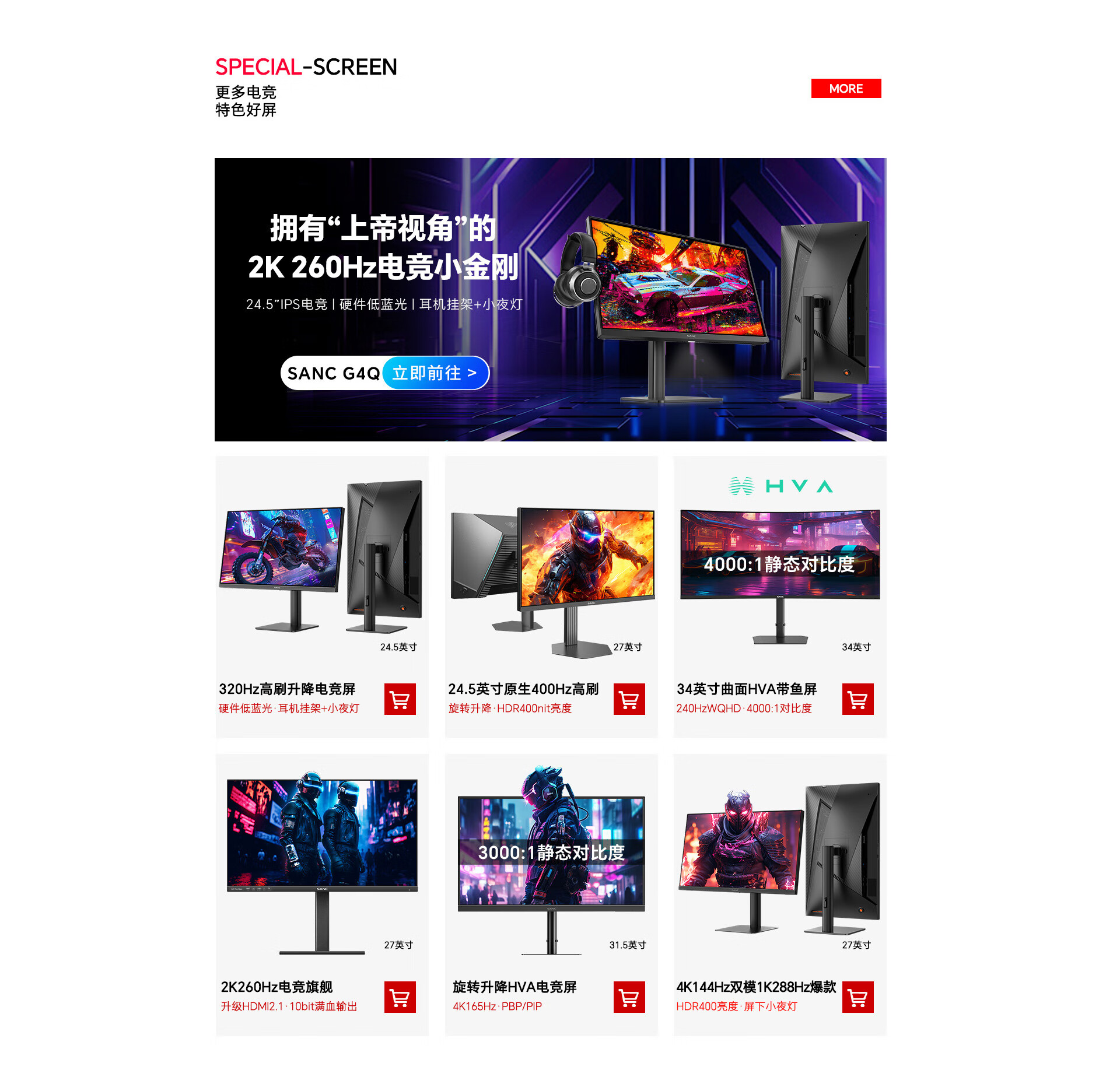SANC 盛色24.5英寸2K260Hz FastIPS显示器1ms 硬件低蓝光 耳机挂架小夜灯 电竞电脑屏幕G4Q E