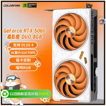 COLORFIRE GeForce RTX 5060 橘影橙 DUO 8GB GDDR7 DLSS 4 猫卡定制 游戏设计电脑显卡