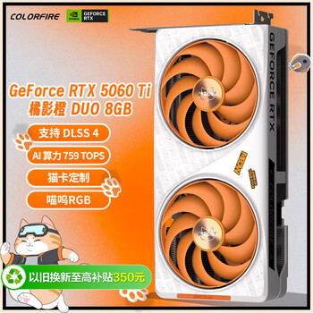 COLORFIRE GeForce RTX 5060 Ti 橘影橙 DUO 8GB GDDR7 DLSS 4 猫卡定制 游戏设计电脑显卡