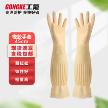 工氪 加长洗碗手套耐用家务胶皮加厚工作劳保耐磨厨房长款防水乳胶橡胶 黄加厚加长款45CM【超过手肘】