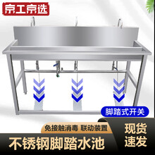京工京选洗手消毒池不锈钢脚踏式消毒洗手池槽 201四人位200*48*110cm