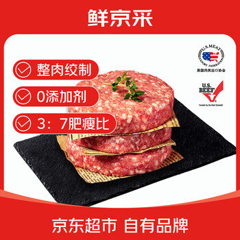 鲜京采 美国安格斯谷饲汉堡牛肉饼2.4斤/8片 汉堡饼 牛肉馅 价低