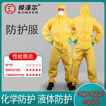 坤泽尔 K4000 双层一次性无纺布防护服耐酸碱化学品农药喷洒喷漆工业加厚防化工作服隔离服 XL码