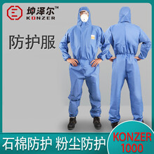 坤泽尔 K1000 双层一次性无纺布防护服民用连体带帽防尘透气实验室农药喷洒喷漆隔离衣 蓝色 L码