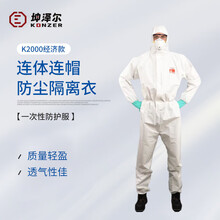 坤泽尔 K2000 一次性无纺布连体连帽防护服经济款防尘隔离衣 XXL码