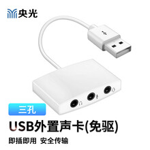 央光usb外置声卡台式机笔记本电脑外接3.5音响耳机麦克风免驱动白色三孔usb声卡YG-LL1017-4-X