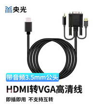 央光hdmi转vga高清线HDMI/VGA连接线电脑显示器投影HD单向转VGA线+音频3.5mm公头1.8M/YG-LL107-10-X