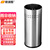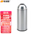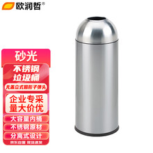 欧润哲 不锈钢无盖立式子弹头桶酒店垃圾桶大号户外室外商场用环卫立式果皮箱电梯口机场 35L不锈钢原色