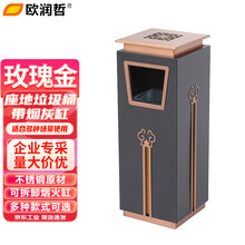 欧润哲 玫瑰金座地垃圾桶带防风烟灰缸酒店大堂垃圾桶商用灭烟桶宾馆带内桶电梯口烟灰桶方桶