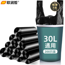 欧润哲 大号垃圾袋 30L黑色背心式手提胶袋 特厚5丝酒店物业办公室户外塑料袋单位机构垃圾废品袋200个