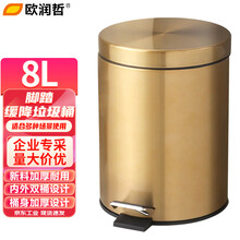 欧润哲 垃圾桶 8L香槟金不锈钢缓降静逸开合带盖翻盖脚踏圆桶款 户外商用卫生间卫生桶厨房垃圾桶 内外双桶