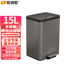 欧润哲 垃圾桶 15L家用不锈钢静逸垃圾桶枪灰客厅厨房垃圾篓公司单位机构脚踩翻盖脚踏方桶
