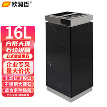 欧润哲 黑石黑金色16L不锈钢方形大理石垃圾桶带烟灰缸酒店大堂垃圾桶商用灭烟桶宾馆带内桶电梯口烟灰桶方桶