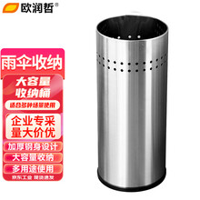 欧润哲 不锈钢圆形雨伞桶酒店大堂雨伞收纳架银行商场雨伞放置桶大厅直筒垃圾桶直投圆桶