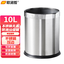 欧润哲 10L无盖防滑不锈钢垃圾桶加厚塑料无盖垃圾桶 办公室单位机构卫生间废纸桶户外厕所直投圆桶