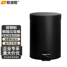欧润哲 垃圾桶 5L黑色缓降静逸脚踏带盖翻盖办公室企业单位卫生间商用圆形垃圾篓脚踏圆桶
