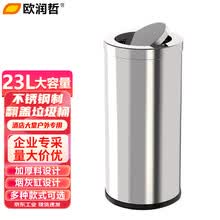 欧润哲 不锈钢垃圾桶翻盖23升户外大号摇盖商用酒店办公写字楼电梯口办公室厨房医院清洁桶23L摇盖桶 30*62cm