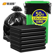 欧润哲 黑色垃圾袋大号环卫桶平口清洁塑料袋240L酒店物业商用饭店用PE塑料袋120*140/3.2丝加厚胶袋 1套50只装