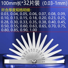 沙图(100mm长*32片套装/0.03-1mm)塞尺弹簧钢高精度单片0.01/1.0mm厚薄规间隙尺气门间隙测套装量尺