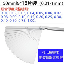 沙图(150mm长*18片套装/0.01-1mm)塞尺弹簧钢高精度单片0.01/1.0mm厚薄规间隙尺气门间隙测套装量尺