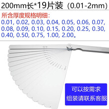 沙图(200mm长*19片套装/0.01-2mm)塞尺弹簧钢高精度单片0.01/1.0mm厚薄规间隙尺气门间隙测套装量尺