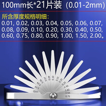 沙图(100mm长*21片套装/0.01-2mm)塞尺弹簧钢高精度单片0.01/1.0mm厚薄规间隙尺气门间隙测套装量尺