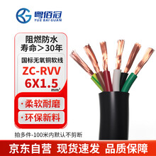 粤佰冠国标六芯电缆线ZC-RVV6*1.5平方 多股铜丝信号线软护套阻燃电源线1米