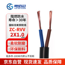 粤佰冠国标二芯电缆线ZC-RVV2*1平方 多股铜丝信号线软护套阻燃电源线1米