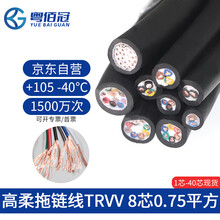 粤佰冠高柔性拖链电缆线八芯国标铜芯TRVV8芯0.75平方阻燃电源线信号线软护套线耐油耐弯折 1米价