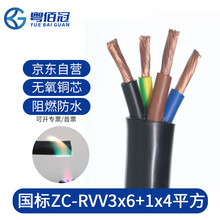 粤佰冠电缆线三相四线ZC-RVV4芯6平方(3+1型)阻燃电源线软护套线国标铜芯 1米价