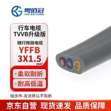 粤佰冠行车扁平电缆3芯YFFB3*1.5平方电动伸缩随行电梯电缆拖链线 1米