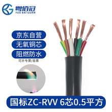 粤佰冠电缆线六芯ZC-RVV6芯0.5平方阻燃电源线软护套线信号线国标铜芯 1米价