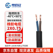 粤佰冠0.75平方2芯橡套软橡胶电缆YZW国标铜芯户外耐磨防水防晒防冻 1米价