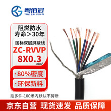 粤佰冠屏蔽线8芯信号控制线ZC-RVVP8*0.3平方通讯电线电缆国标铜芯 1米