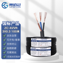 国标铜芯ZC-AVVR3芯0.3平方电缆线阻燃三芯电源线软护套线信号线100米