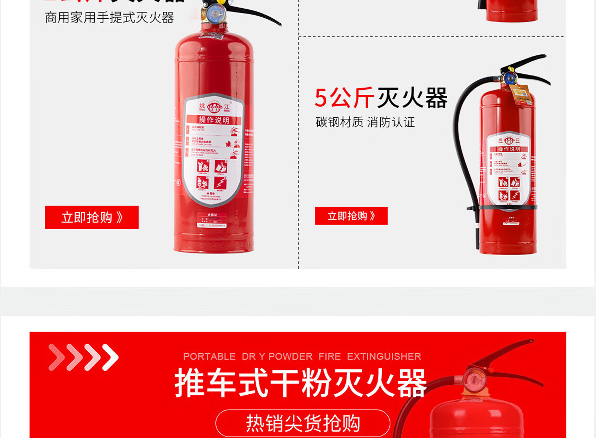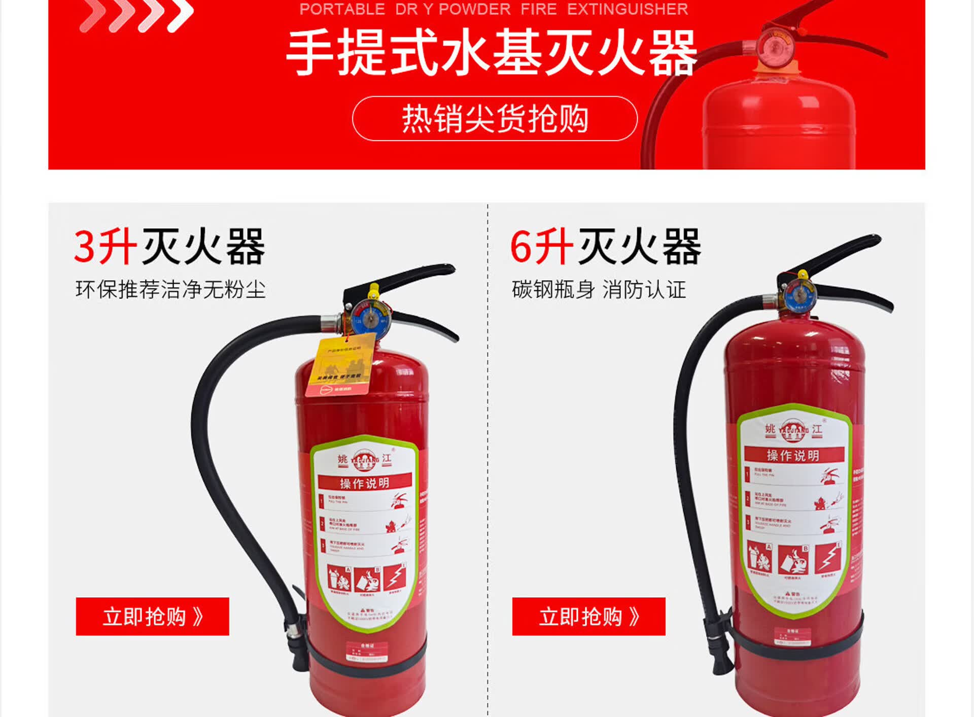 姚江 干粉灭火器4公斤手提式家用商用4KG灭火器 2025新国标 MF/ABCE4C