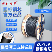 珠江电缆 ZC-YJV国标铜3芯*10平方户外充电桩阻燃护套电力电缆 1米