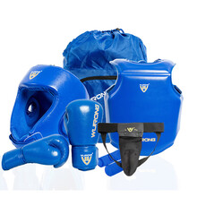 名企(MINGQI)散打护具超纤皮革全套拳击格斗训练装散打服蓝色8件套-sd