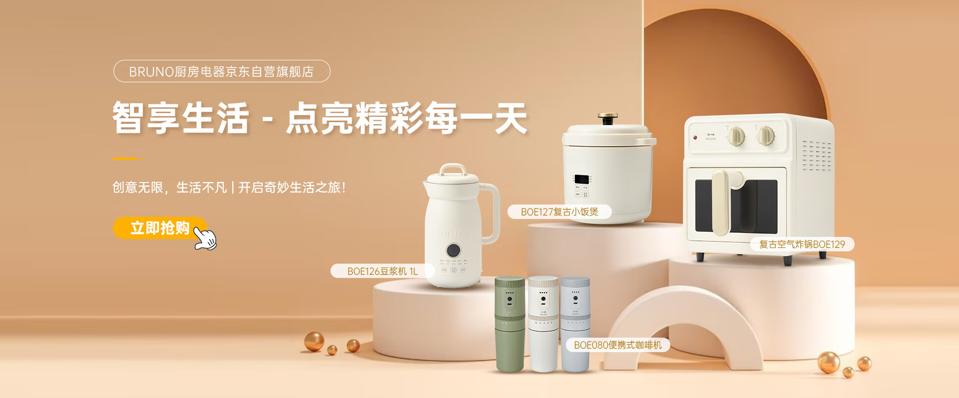 BRUNO二代豆浆机家用小型1-2人全自动智能预约免泡免滤米糊搅拌一键清洗不锈钢低噪音破壁机 象牙白0.6L