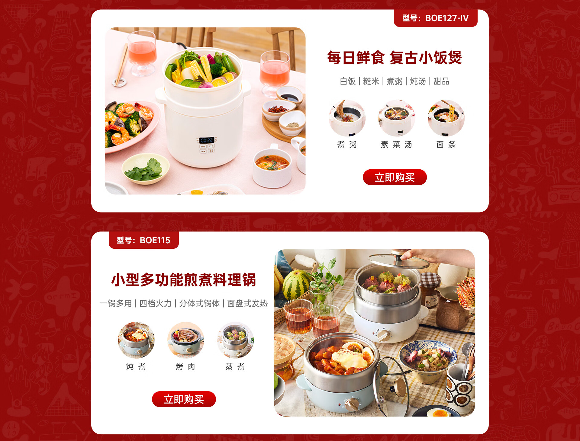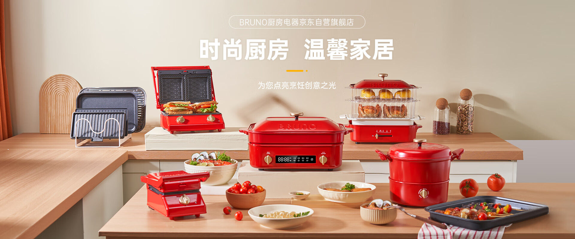 BRUNO【政府补贴】二代多功能锅家用电火锅蒸煮炒一体不沾煎烤料理锅 家用电蒸锅七夕送礼 5L 红BOE123