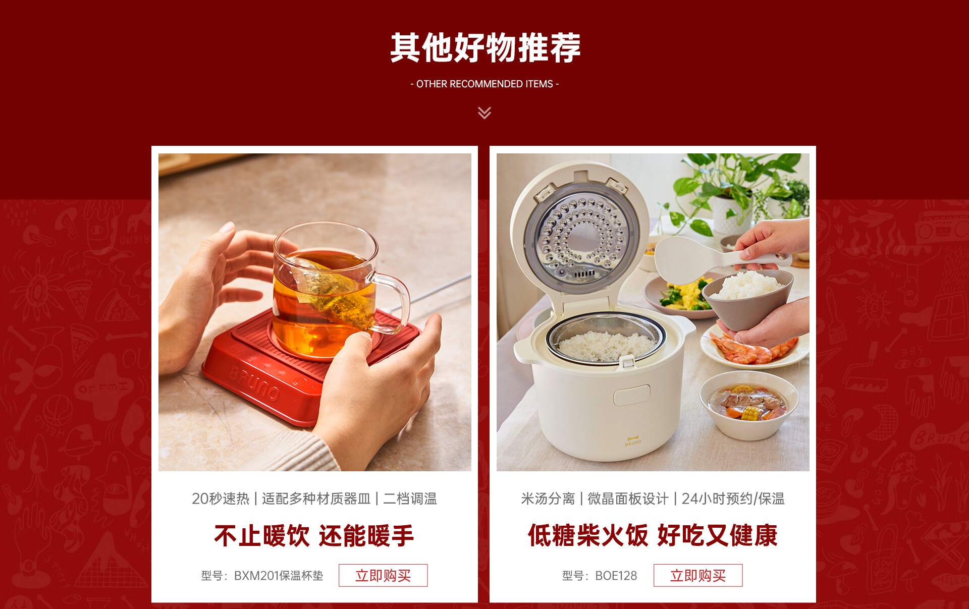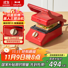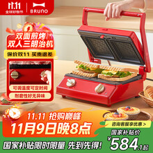 BRUNO【政府补贴】小型三明治机单人早餐机家用小型多功能吐司机煎肉帕帕尼机红BOE083-RD-CEC